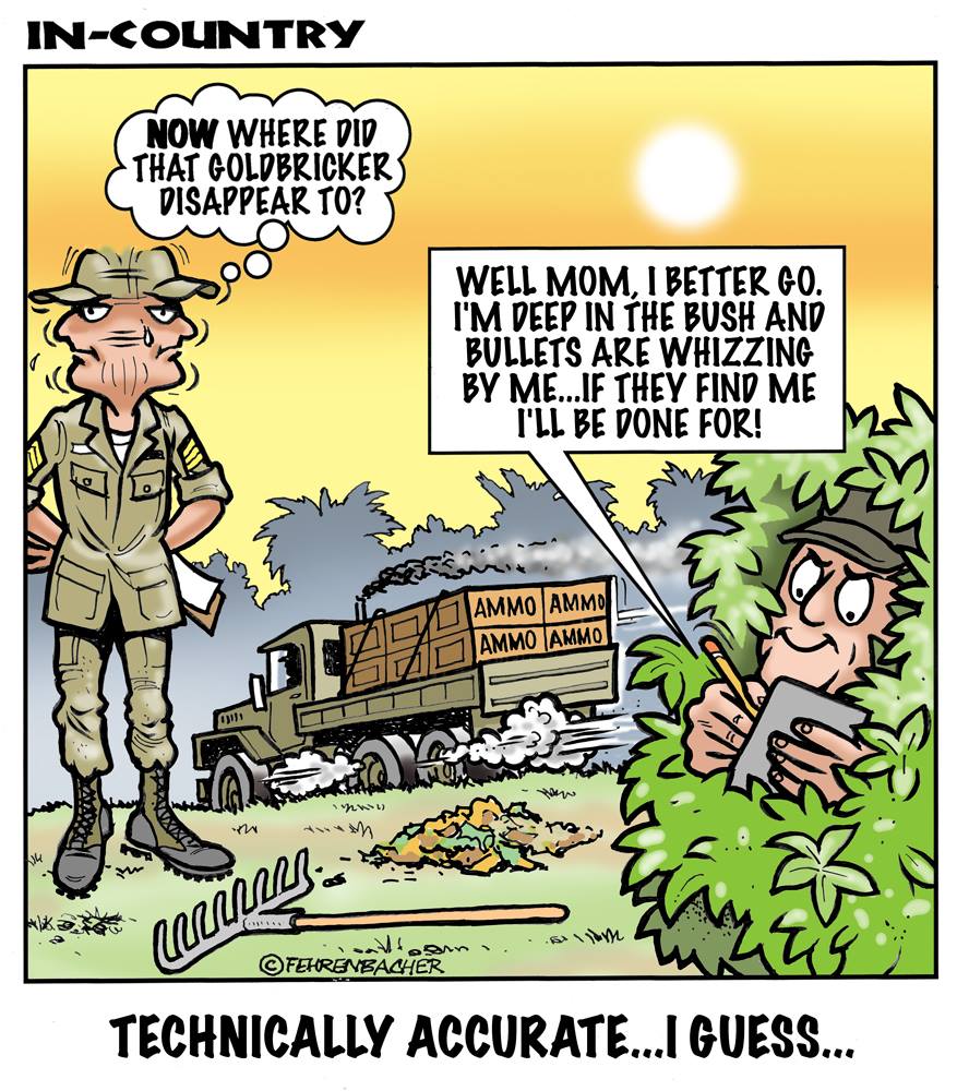 Phil enlisted in the Army in 1965 where he served for years in Vietnam. He became a graphic designer and has worked for the state of Oregon for 26 years. He retired in 2003 and started the Cartoon "In-Country". The cartoons reflect his experiences during his tour of duty in South Vietnam.