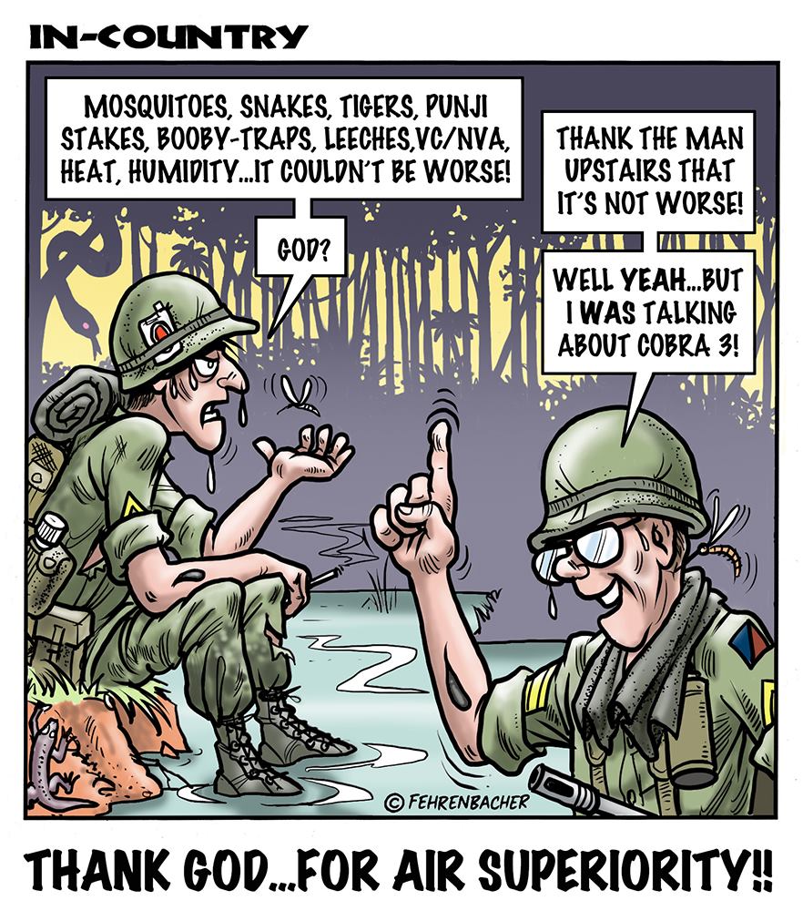 Phil enlisted in the Army in 1965 where he served for years in Vietnam. He became a graphic designer and has worked for the state of Oregon for 26 years. He retired in 2003 and started the Cartoon "In-Country". The cartoons reflect his experiences during his tour of duty in South Vietnam.