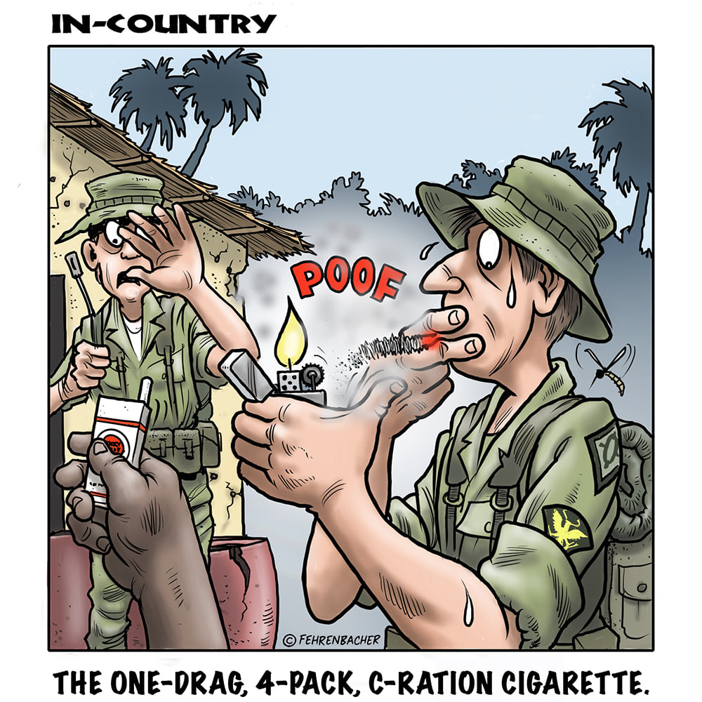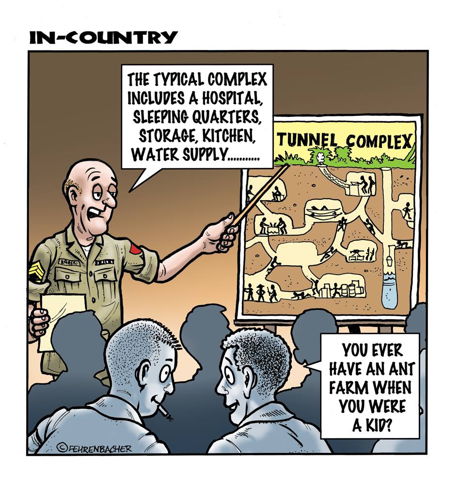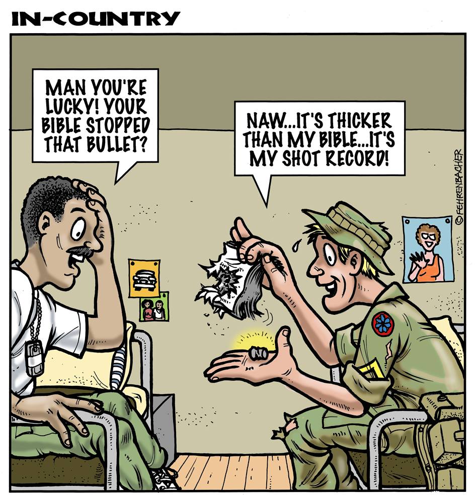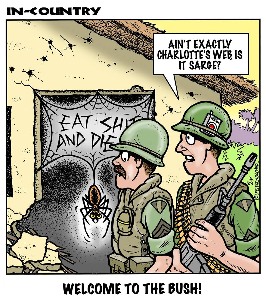 Phil enlisted in the Army in 1965 where he served for years in Vietnam. He became a graphic designer and has worked for the state of Oregon for 26 years. He retired in 2003 and started the Cartoon "In-Country". The cartoons reflect his experiences during his tour of duty in South Vietnam.